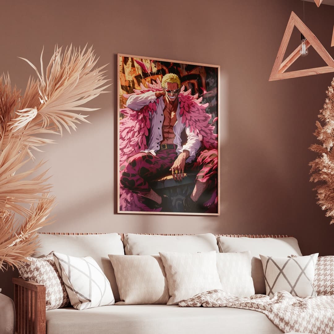 L'incarnation magistrale de l'arrogance et du luxe flamboyant, où le sourire iconique de Doflamingo domine votre espace avec une puissance royale.