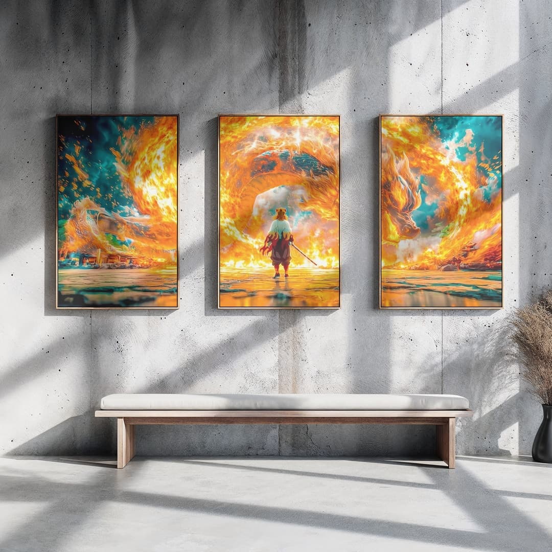 Set Your Heart Ablaze: Rengoku’s Spirit (Triptych)