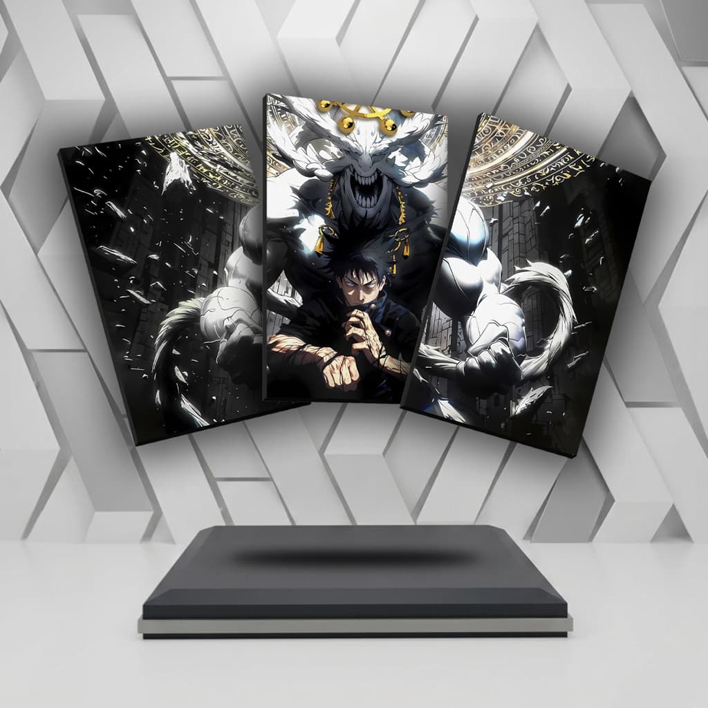 L'intensité tragique de l'invocation de Mahoraga figée dans un clair-obscur mystique, capturant le sacrifice ultime de Megumi au cœur du chaos de Shibuya.